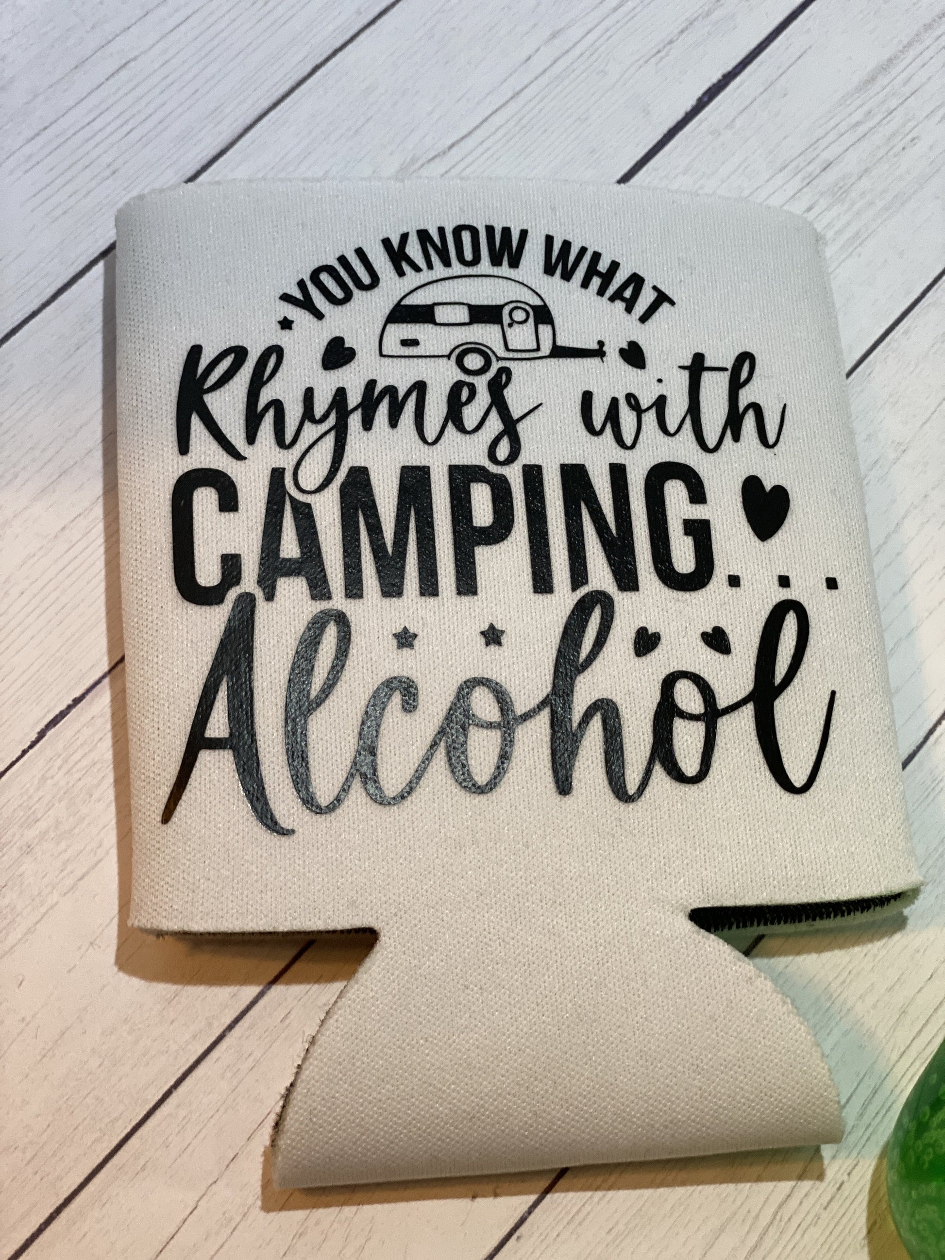 You Know What Rhymes With Camping Alcohol White Standard Koozie